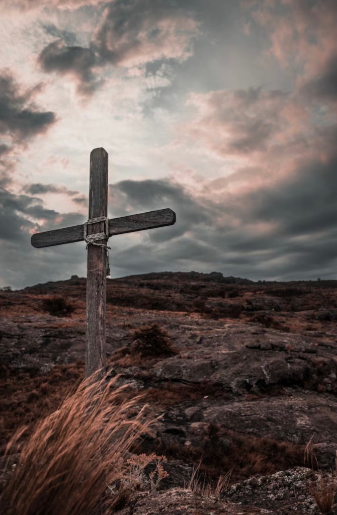 Scourged, nailed to the cross, bearing our sins for our eternal benefit